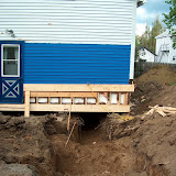 Imagine our excitement when our general contractor knocked on our door before 8:00am this morning, ready to start our renovation project! At last! He had brought a worker with him to remove the siding from all sides of the house, so that they could check out the state of our sills and joists. We are thrilled to finally get underway.